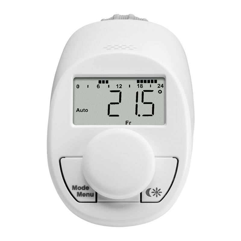 Nustatykite temperatūrą pagal savo poreikius! Intuityviai valdoma rankenėle galite nustatyti temperatūrą tiksliai 0,5 °C tikslumu. Galite nustatyti iki 3 šildymo fazių kiekvienai savaitės dienai, todėl puikiai suderinsite šildymo grafiką su savo gyvenimo būdu. Nesvarbu, ar dirbate nuotoliniu būdu, ar grįžtate namo vakare – ideali temperatūra visada jūsų laukia.
